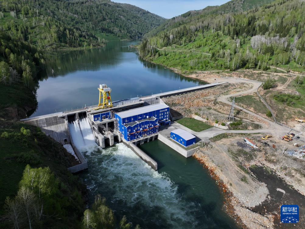 這是5月8日在哈薩克斯坦東哈州拍攝的圖爾古孫水電站(無人機照片)。新華社記者 李任滋 攝