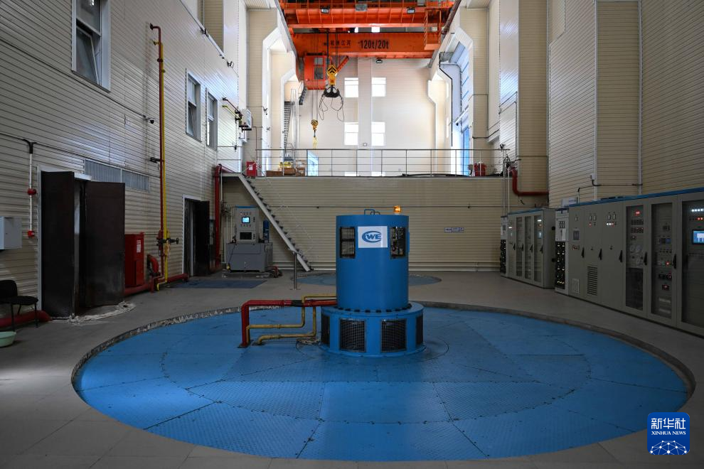 這是5月8日在哈薩克斯坦東哈州圖爾古孫水電站拍攝的一臺水輪發電機。新華社記者 李任滋 攝