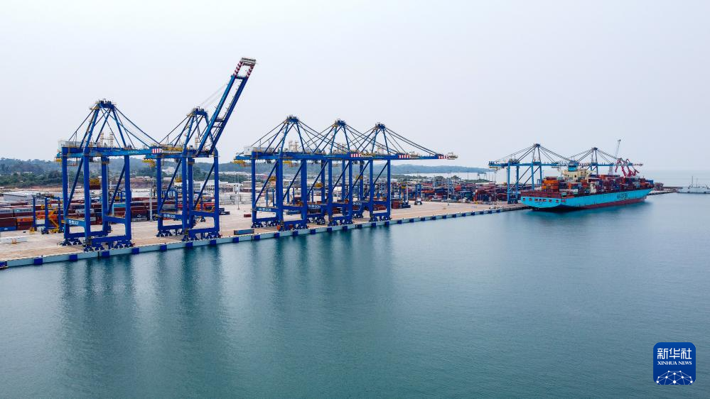 這是2025年2月21日在喀麥隆南部大區的克里比拍攝的喀麥隆克里比深水港(無人機照片)。新華社發(科普索攝)