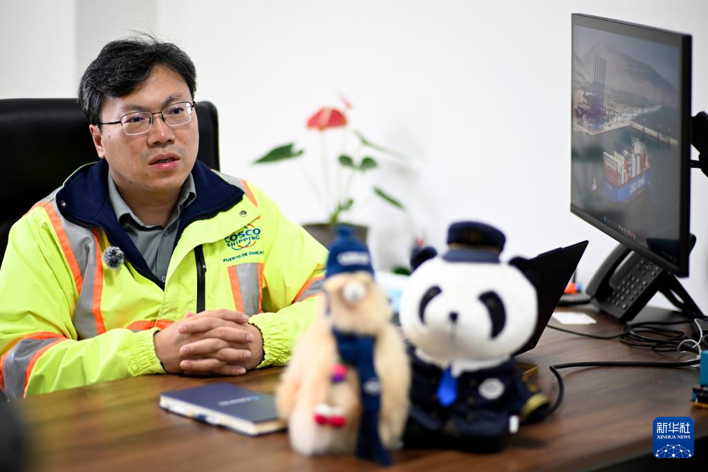 5月16日,在秘魯錢凱港,中遠海運港口秘魯錢凱公司常務副總經理何波接受新華社記者采訪。新華社記者 李木子 攝