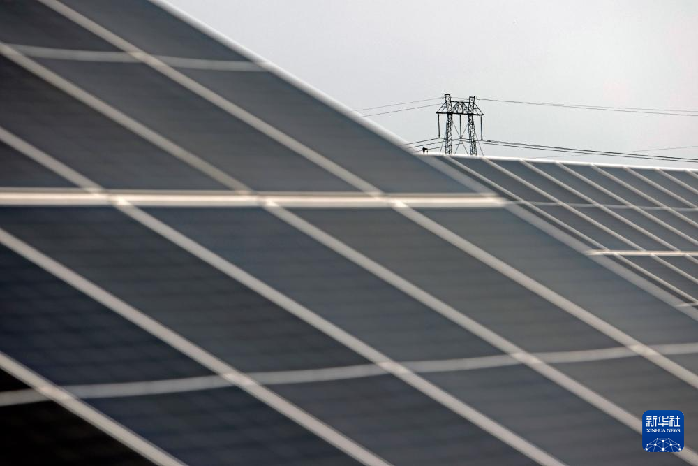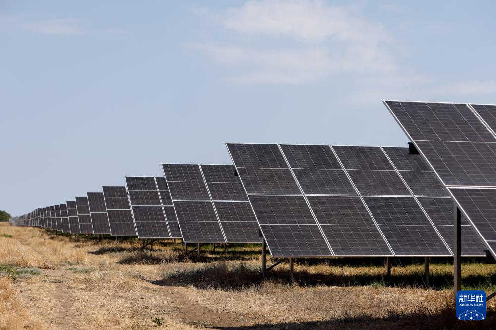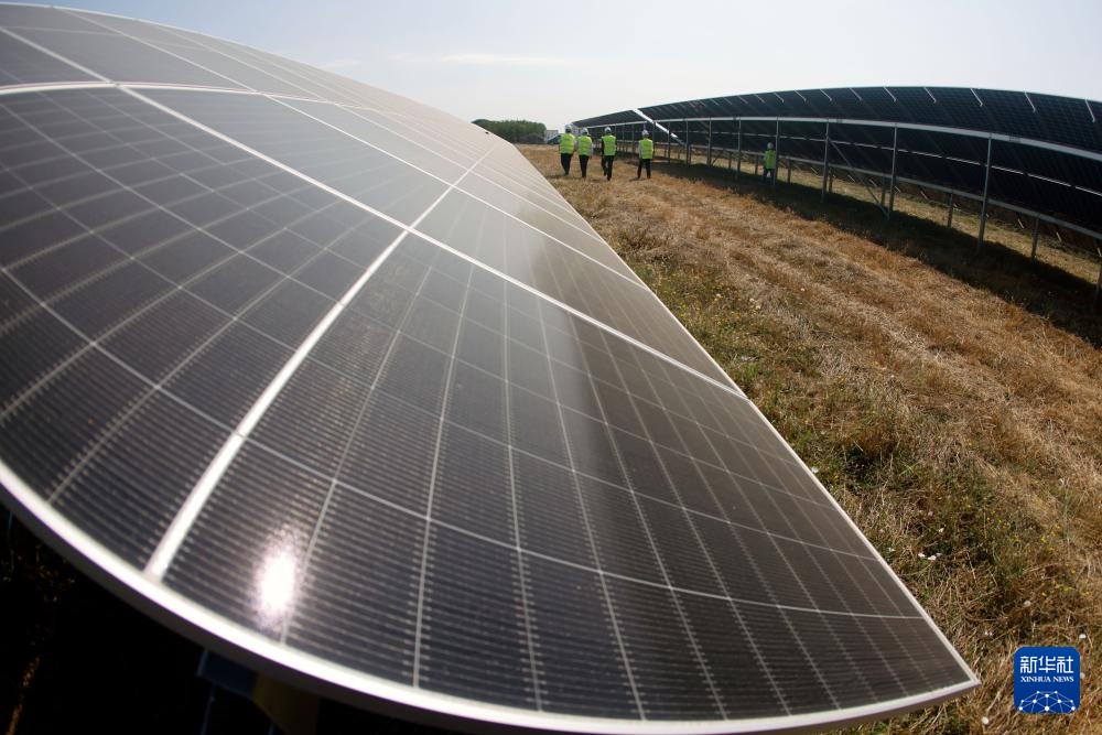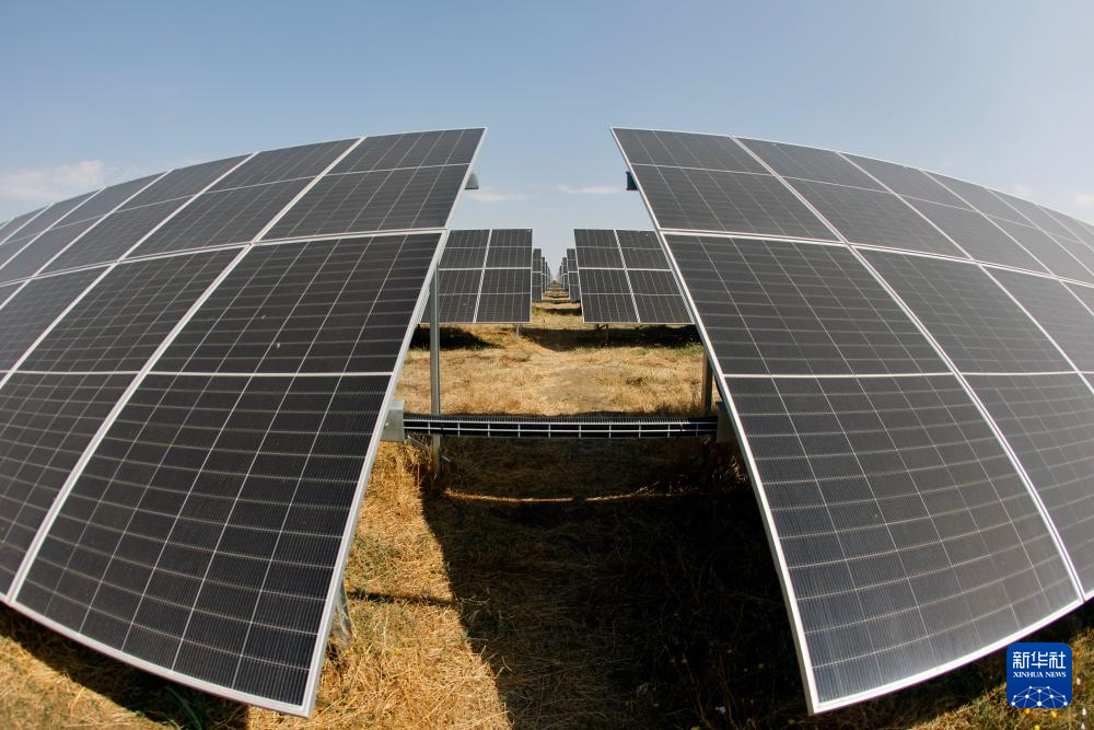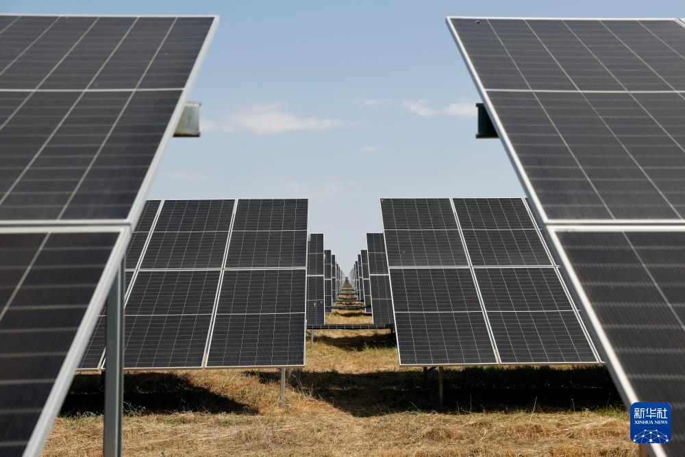 這是8月12日在羅馬尼亞東南部克勒拉??h斯特凡大公村拍攝的31.8兆瓦光伏電站項目現場的光伏發電板。