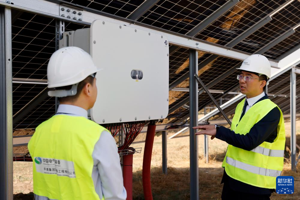 8月12日,在羅馬尼亞東南部克勒拉??h的斯特凡大公村,中國平高集團國際工程有限公司總經理朱繼斌(右)在31.8兆瓦光伏電站項目現場與工作人員交流。