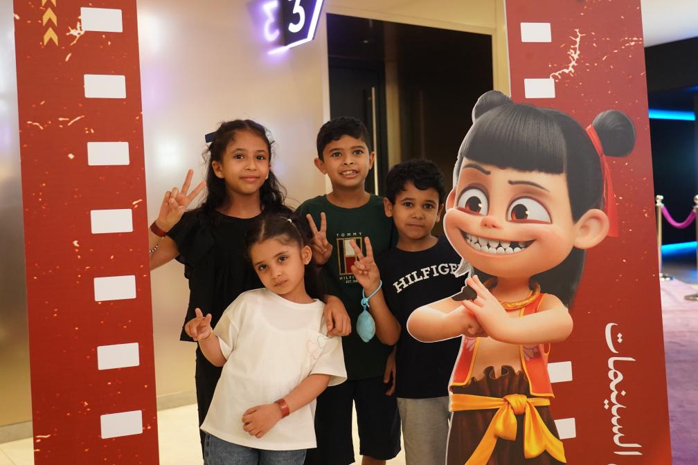 6月25日,在沙特阿拉伯利雅得,觀眾在《哪吒之魔童鬧?!返男麄髡拱迮恼樟裟?。(新華社記者王海洲攝)