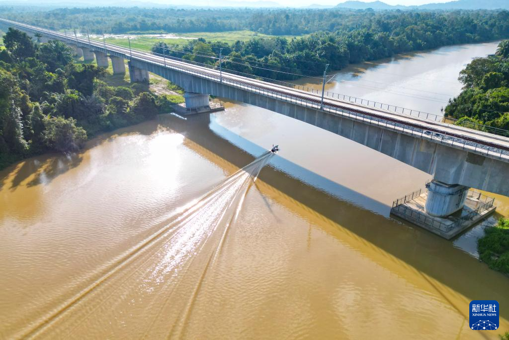 這是10月10日在馬來西亞彭亨州拍攝的馬來西亞東海岸鐵路的一座橋梁(無人機拍攝)。新華社記者 程一恒 攝
