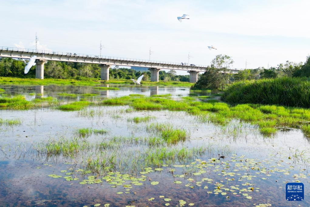 這是10月10日在馬來西亞彭亨州拍攝的馬來西亞東海岸鐵路(無人機拍攝)。新華社記者 程一恒 攝