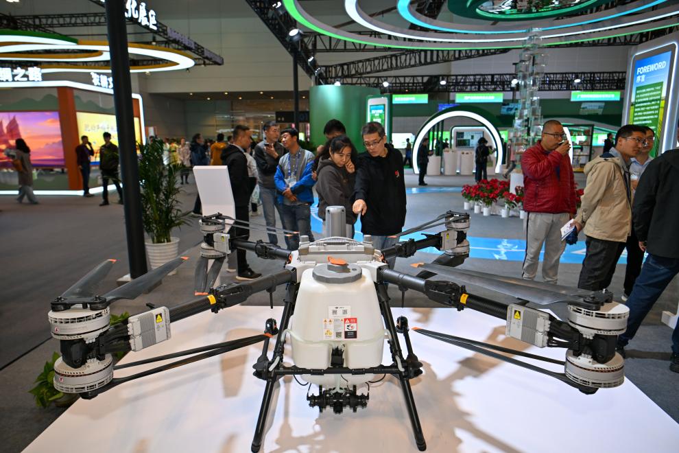 10月17日,觀眾在第二十二屆中國國際農產品交易會的農業科技展區參觀。新華社記者 孫凡越 攝