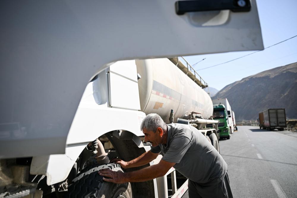 在塔吉克斯坦卡拉依洪姆村附近,司機圖拉洪檢查車輛。他介紹道:“這條路我跑了40年!去杜尚別以前要花很長時間,大約三四天,現在一天半就到了?!?/span>
