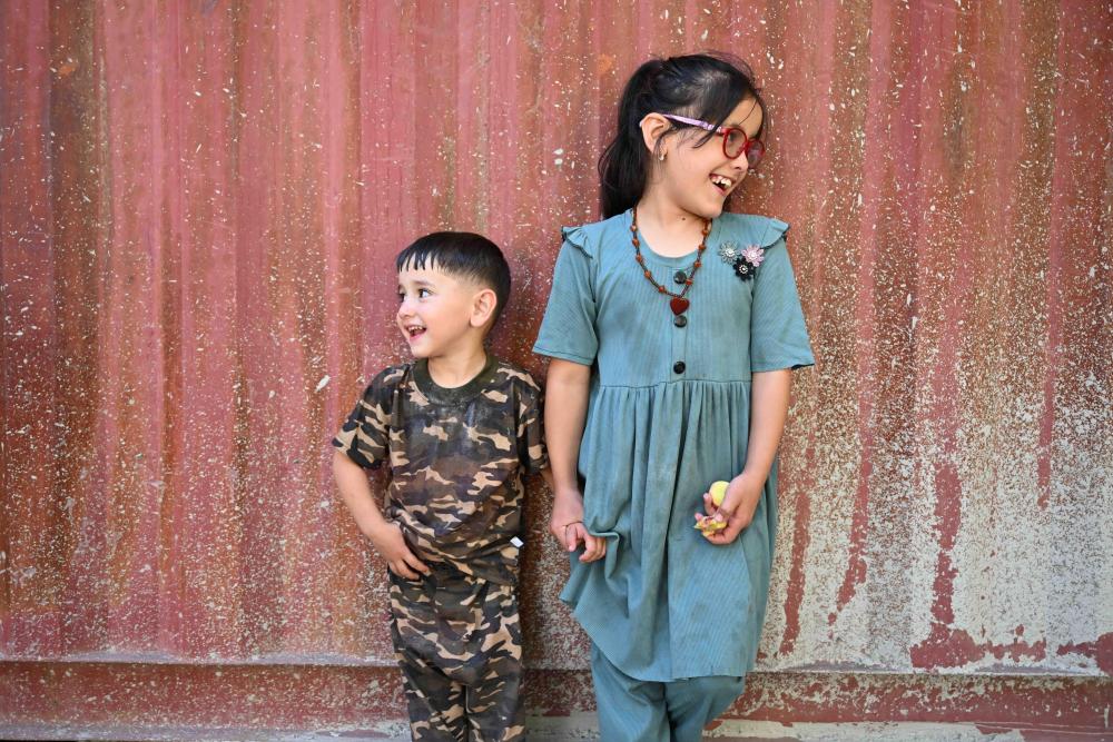 基什瓦爾的孩子們在院子里玩耍。