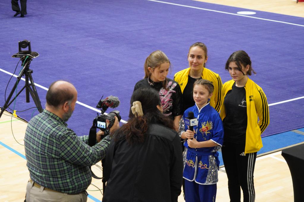 11月22日,瑪利亞·阿魯秋尼揚 (后左)和三個女兒在2025年匈牙利武術錦標賽上接受新華社記者采訪。新華社記者 陳浩 攝