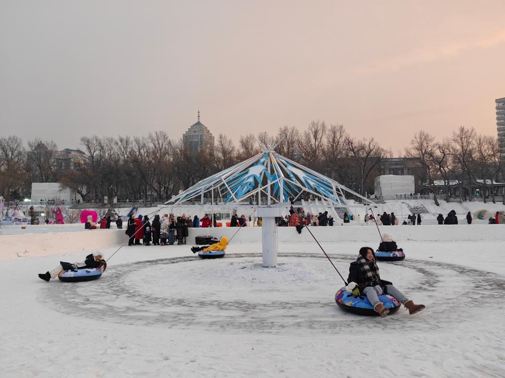 每年,冰封的松花江上都會設置冰雪娛樂活動,冰壺、冰球、冰盤、雪地球、雪地足球等能滿足不同年齡群體的娛樂需求,尤其是青少年。