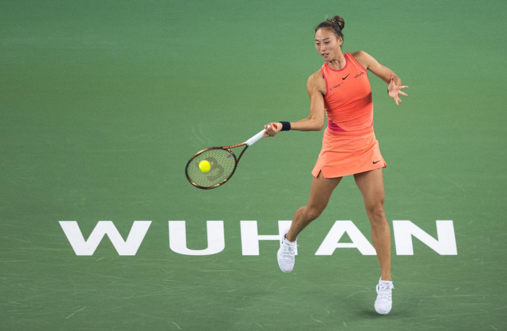 10月9日,鄭欽文在武網比賽中回球。新華社記者 肖藝九 攝