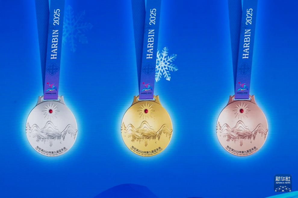 亞冬會獎牌“競速精神”同日發布。獎牌正面融合賽道流線和亞冬會會徽,以動態沖擊力凝煉出運動健兒馳騁賽場的矯健身姿,展現出競技體育的力與美;賽道的曲線造型融入哈爾濱大劇院的形象,具有獨特的城市美學特征。