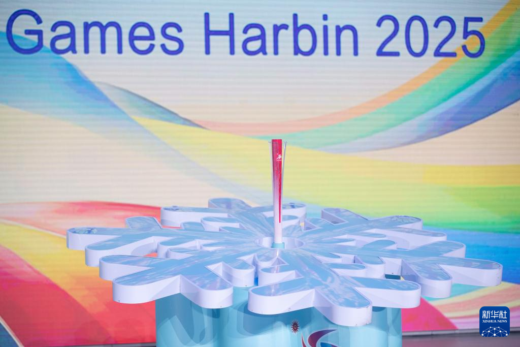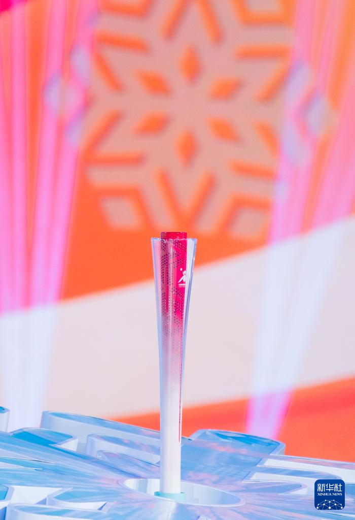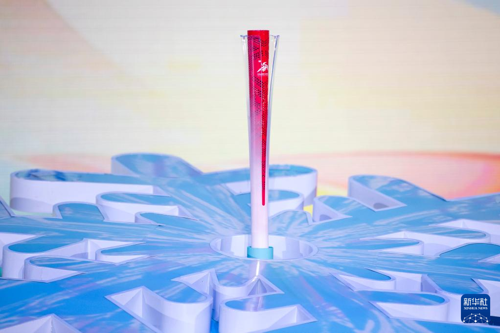 這是10月30日在活動現場拍攝的亞冬會火炬。本屆亞冬會火炬主題為“澎湃”,寓意著本屆亞冬會將充滿活力與激情。新華社記者 張濤 攝