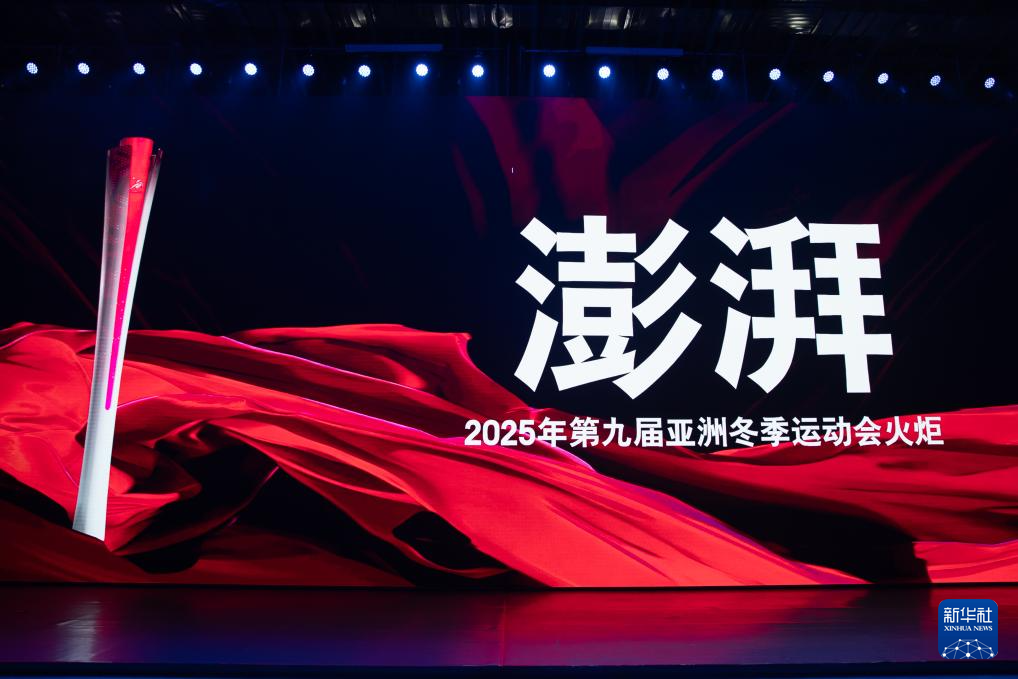 10月30日,活動現場大屏幕顯示亞冬會火炬。本屆亞冬會火炬主題為“澎湃”,寓意著本屆亞冬會將充滿活力與激情。新華社記者 張濤 攝