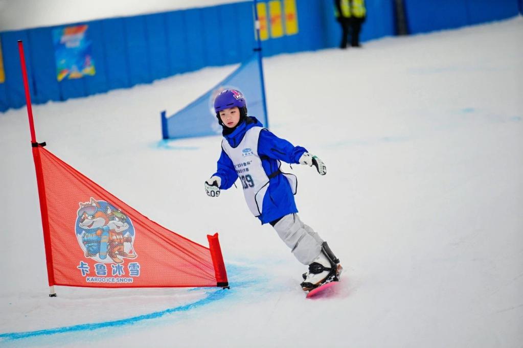 小選手在深圳卡魯冰雪世界參加滑雪綠道公開賽。