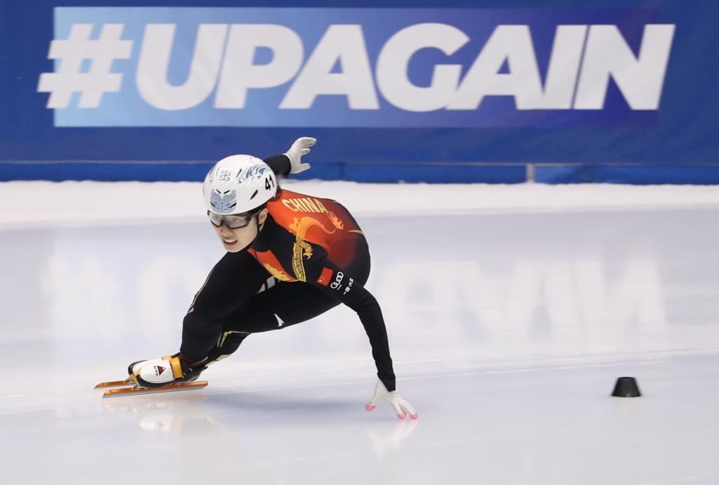 2021年10月30日,中國選手曲春雨在短道速滑世界杯名古屋站女子500米比賽中。新華社記者 杜瀟逸 攝