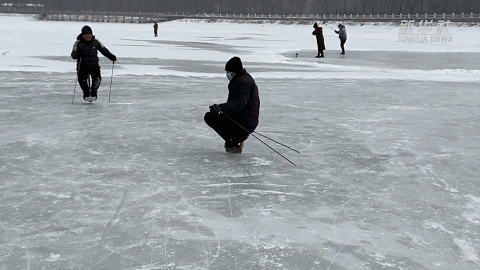 不同膚色的人在松花江上滑野冰