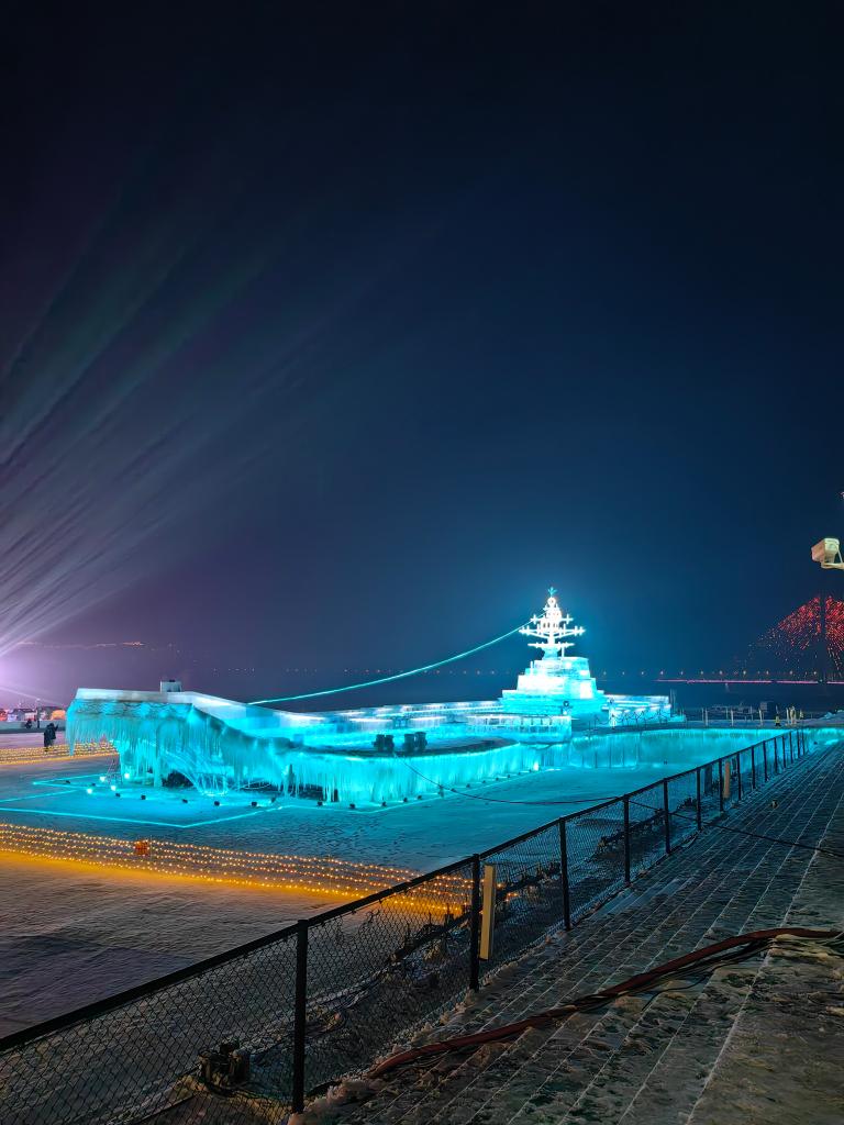 在哈爾濱大劇院旁的江面上