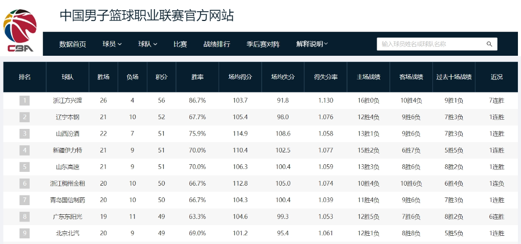 CBA聯賽官網截圖