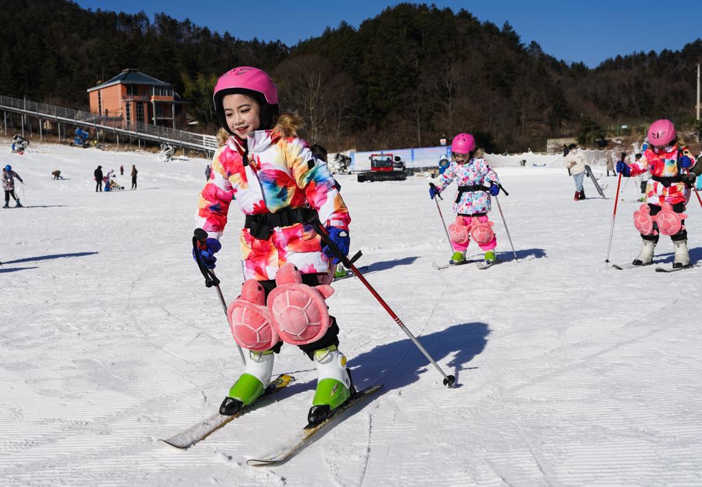 1月15日,小朋友們練習滑雪。新華社記者 杜宇 攝