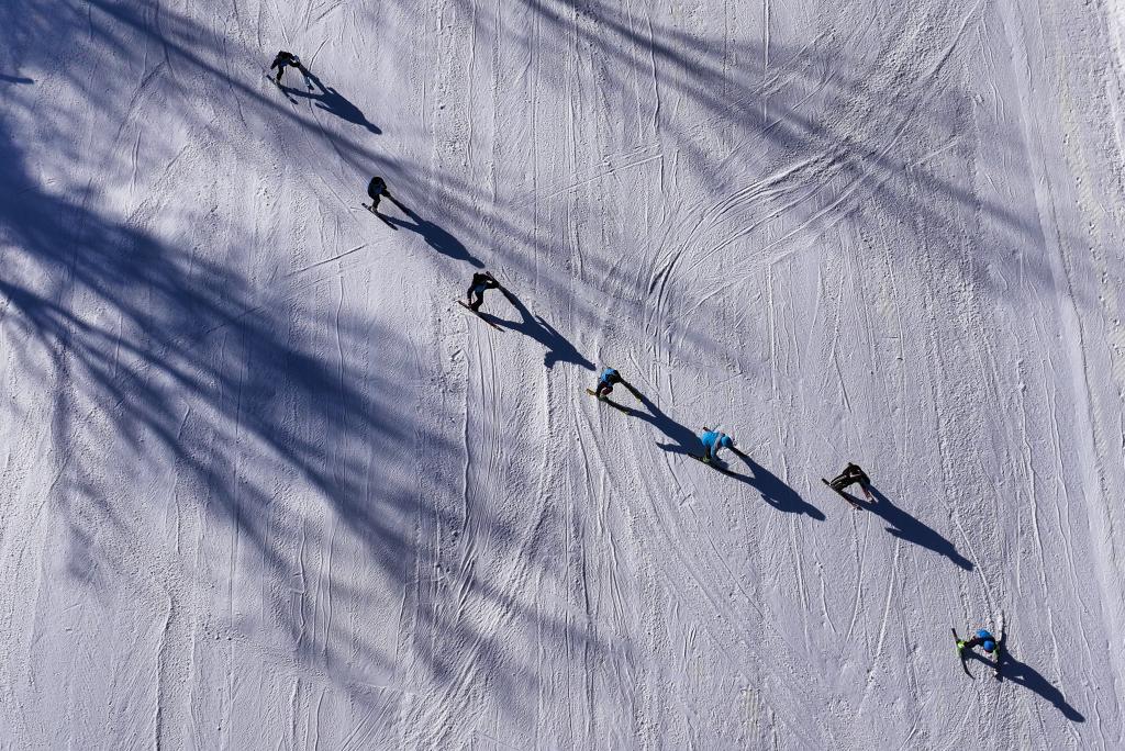 1月15日,人們在雪道上滑行(無人機照片)。新華社記者 杜宇 攝