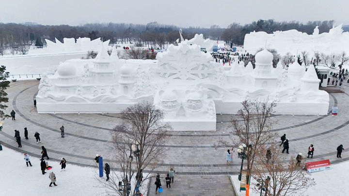 在哈爾濱冰雪大世界,數以萬計的游客在這座“冰雪王國”樂享冰情雪趣,慶祝新年到來。雄偉的中國天壇、高聳的馬來西亞雙子塔、靈動的新加坡魚尾獅……在占地百萬平方米的園區里,亞奧理事會成員的地標造型冰雕林立,主打“足不出園暢游亞洲”。