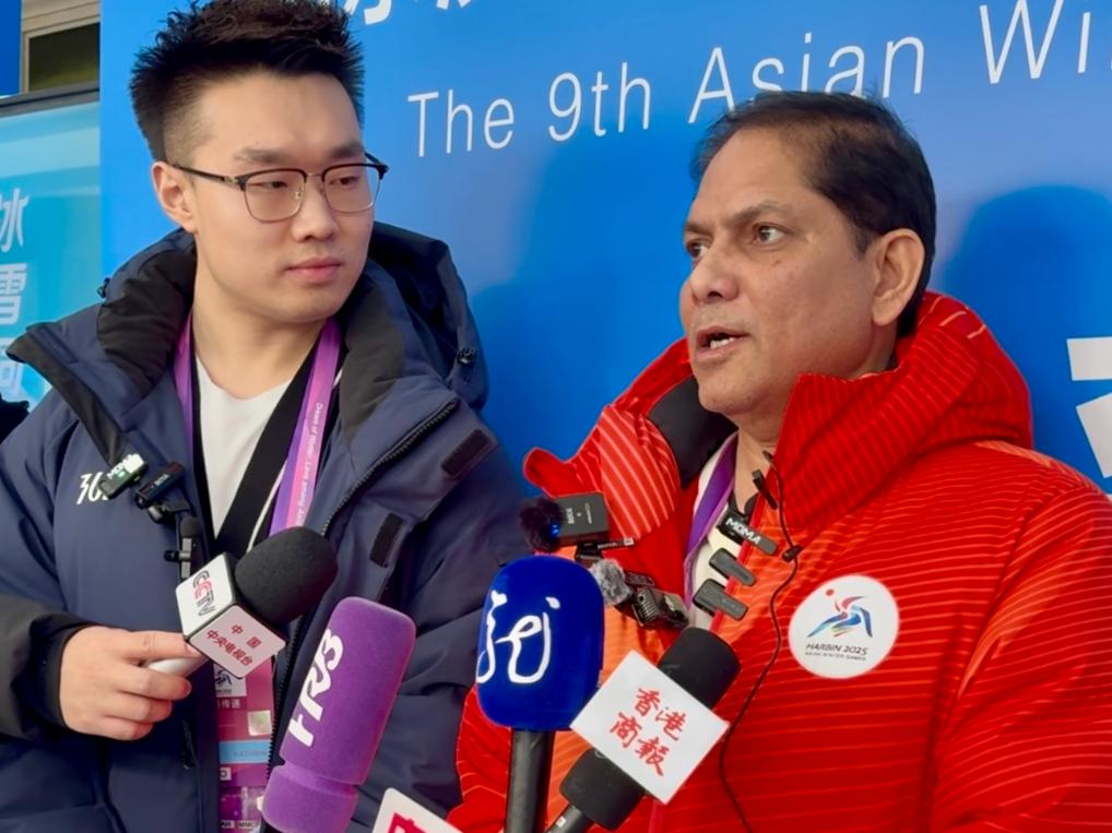 亞奧理事會副總干事維諾德(右)接受媒體采訪(2月2日攝)。新華社記者 楊思琪攝