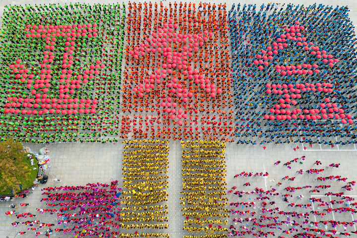 這是2023年7月8日拍攝的在哈爾濱太陽島景區太陽石廣場舉行的慶祝儀式現場(無人機照片)。當日,中國哈爾濱市獲得2025年第九屆亞洲冬季運動會舉辦權。新華社記者 張濤 攝