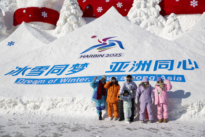 松花江銀裝素裹,連綿十幾公里的江面上,冰雪雕琢成的亞冬會會徽、吉祥物等點綴其中;中央大街上,人們爭相與亞冬會吉祥物“濱濱”“妮妮”合影,手里冰糖葫蘆的甜香交織著俄式列巴的焦香;鴿子不時掠過索菲亞教堂的洋蔥頂,雪粉抖落,亞冬會特許商店內的外國記者趕緊按下快門。