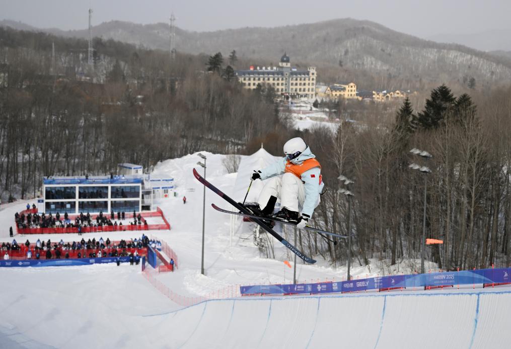 2月8日,李方慧在第九屆亞冬會自由式滑雪女子U型場地技巧比賽中。新華社記者 夏一方 攝