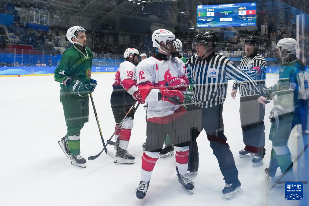 當日,在哈爾濱舉行的第九屆亞冬會男子冰球C組比賽中,中國香港隊5比1戰勝土庫曼斯坦隊。