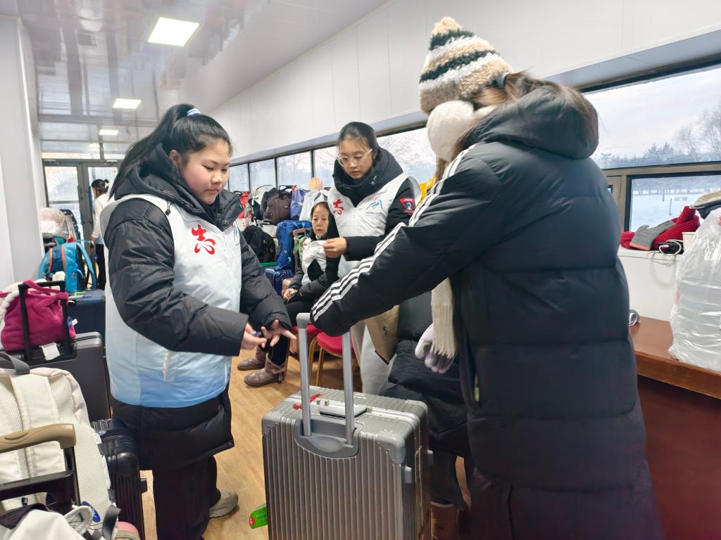穿著帶有亞冬會標識的志愿者馬甲,熟練地接過游客遞過來的沉甸甸的行李,拿起一對號牌后,一個交給游客,另一個牢牢系在行李上,并在記錄冊上記好每一項信息……這名志愿者就是老常家的“寶貝疙瘩”常希杰,15歲的她已經是個“老”志愿者了。從2017年起,常希杰就常給參與各項志愿服務工作的父母“打下手”。這次亞冬會恰逢寒假,常希杰也積極參與到志愿服務工作中來。