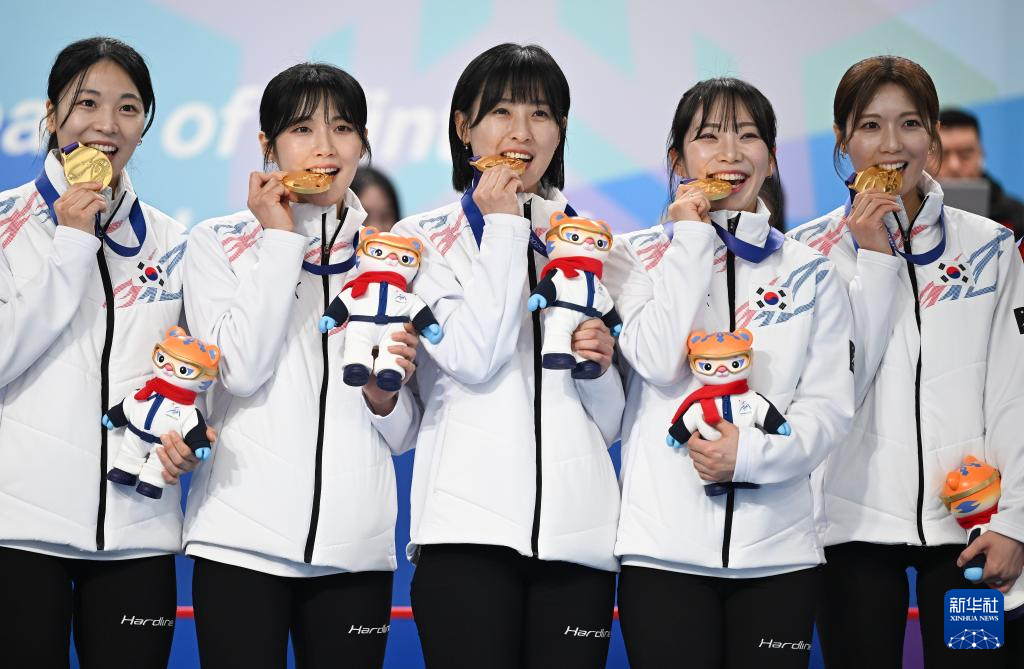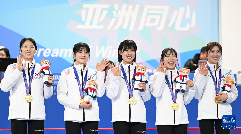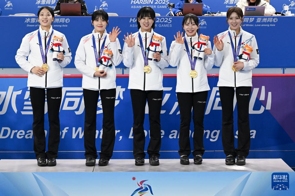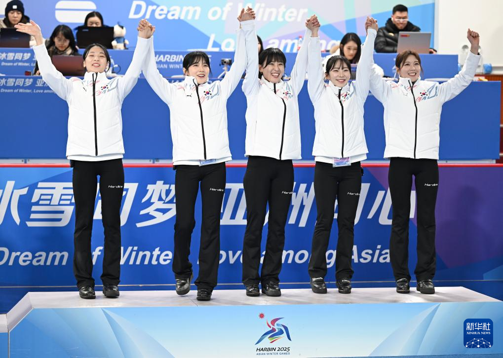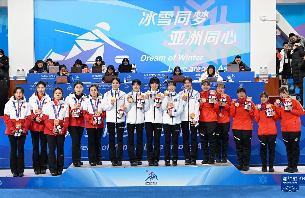當日,第九屆亞冬會女子冰壺頒獎儀式在哈爾濱舉行。