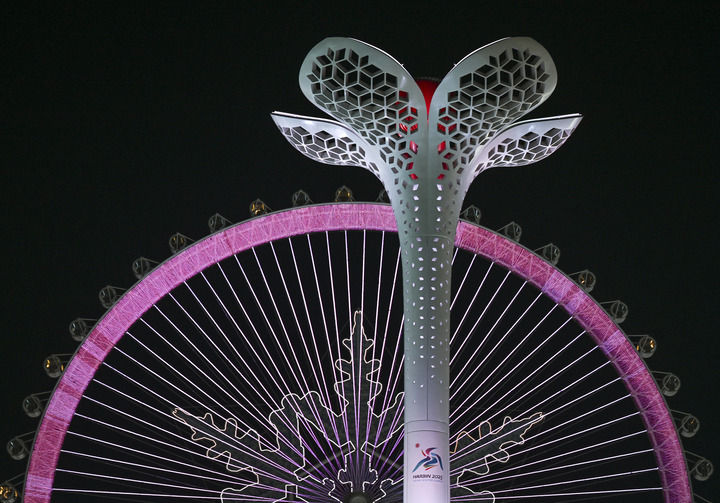 松花江畔的冰雪大世界景區里,中國天壇祈年殿遙對新加坡魚尾獅,印度泰姬陵“遇見”卡塔爾盧塞爾體育場……亞奧理事會成員國家和地區的地標景觀,以冰雪之姿與四海賓朋見面,展現出不同文明交流對話的美妙圖景。