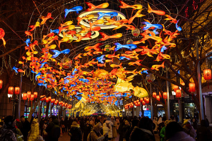 本屆亞冬會恰逢首個非遺中國年,亞洲來賓在哈爾濱過足了“春節癮”。這些天,冰城街頭巷尾張燈結彩、游人如織。在中央大街,火紅燈籠高高掛,造型各異的錦鯉花燈栩栩如生;太陽島雪博會上,網紅大雪人扎著紅色圍巾,喜氣洋洋地向游客問好。