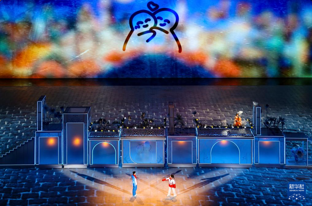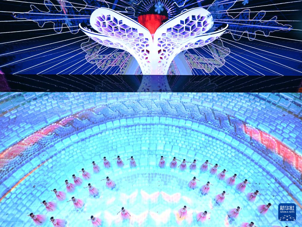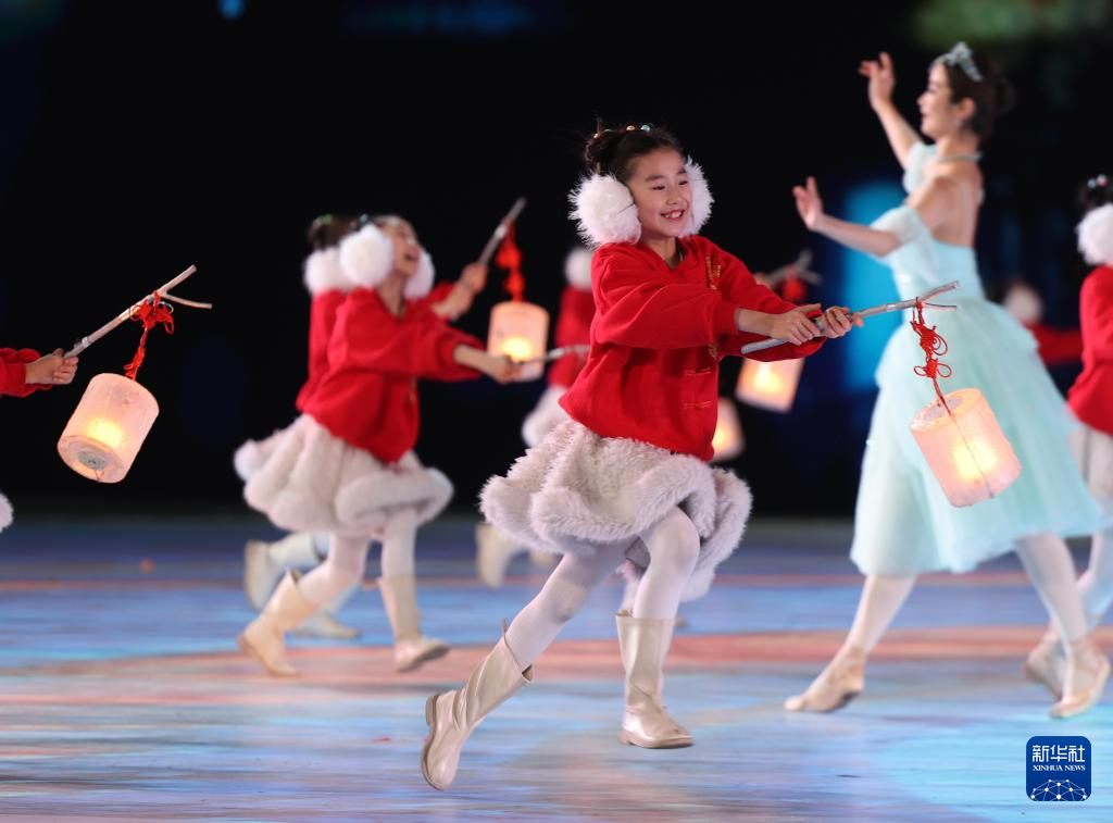 這是2月14日在閉幕式上拍攝的下一屆亞冬會主辦城市帶來的文藝表演。