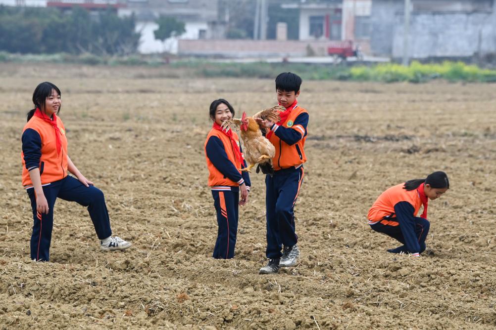 學生們玩起了抓雞游戲