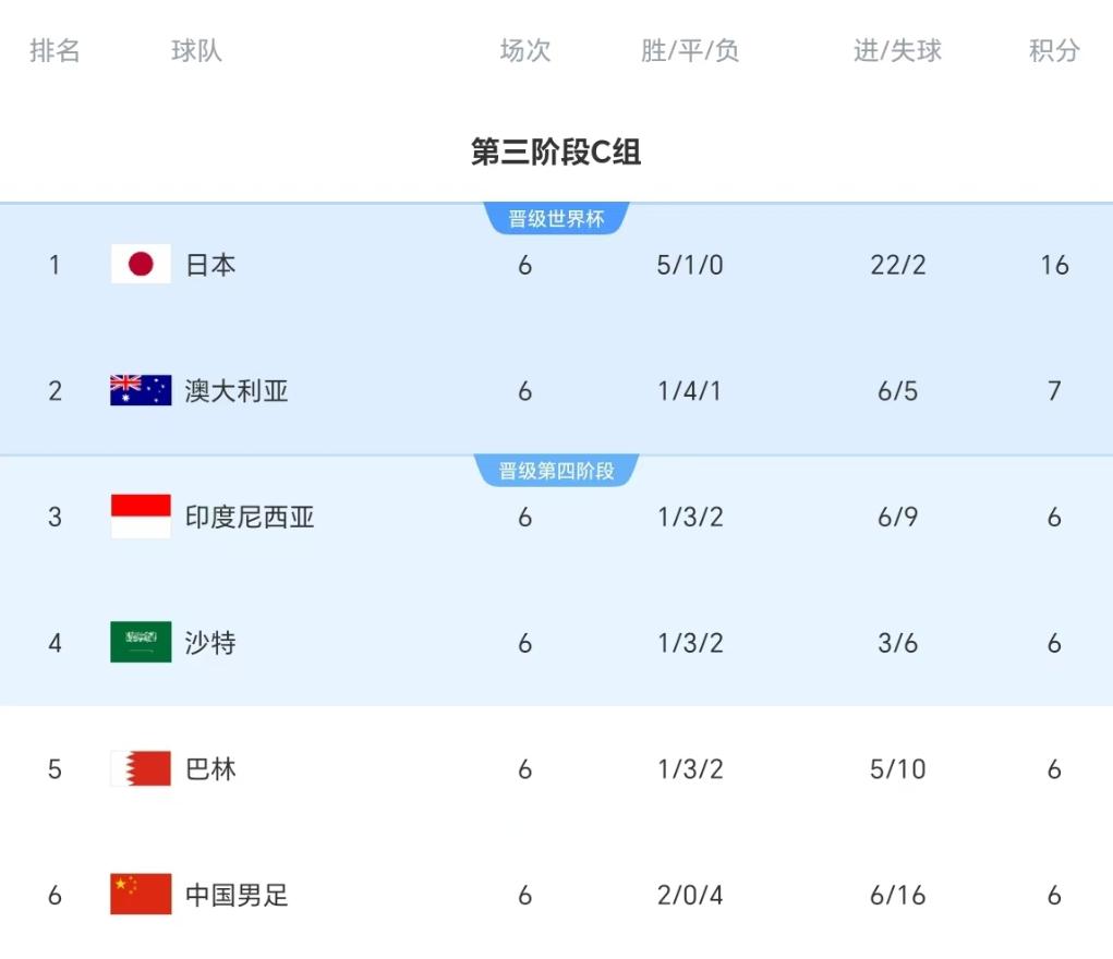 雖然國足目前在C組暫列第6名