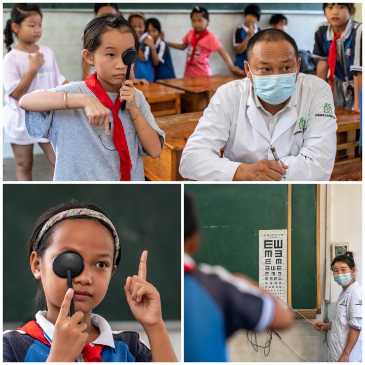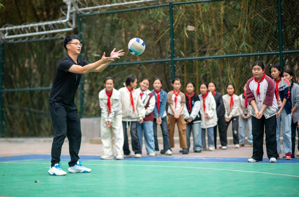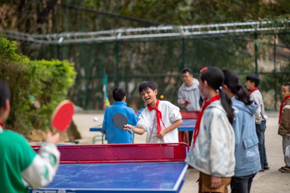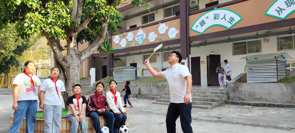 ↑校長孫付標與“眼鏡”男孩打羽毛球(為保護隱私,裁去照片左側男孩圖像)