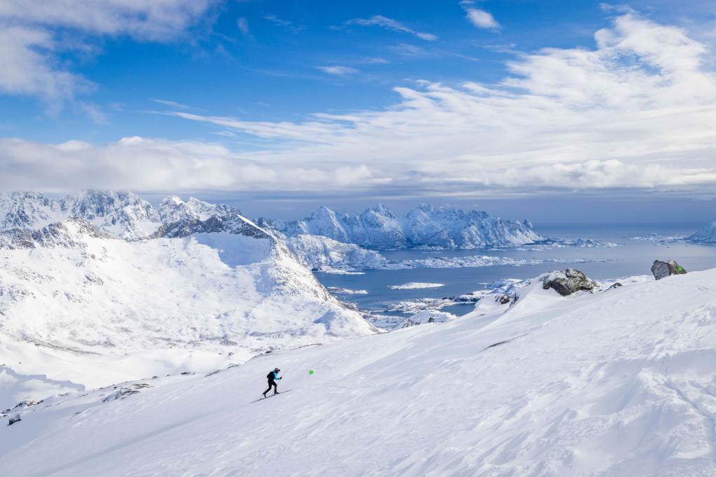 一名運動員在挪威羅弗敦滑雪登山賽中行進。圖片來自The Arctic Triple官網