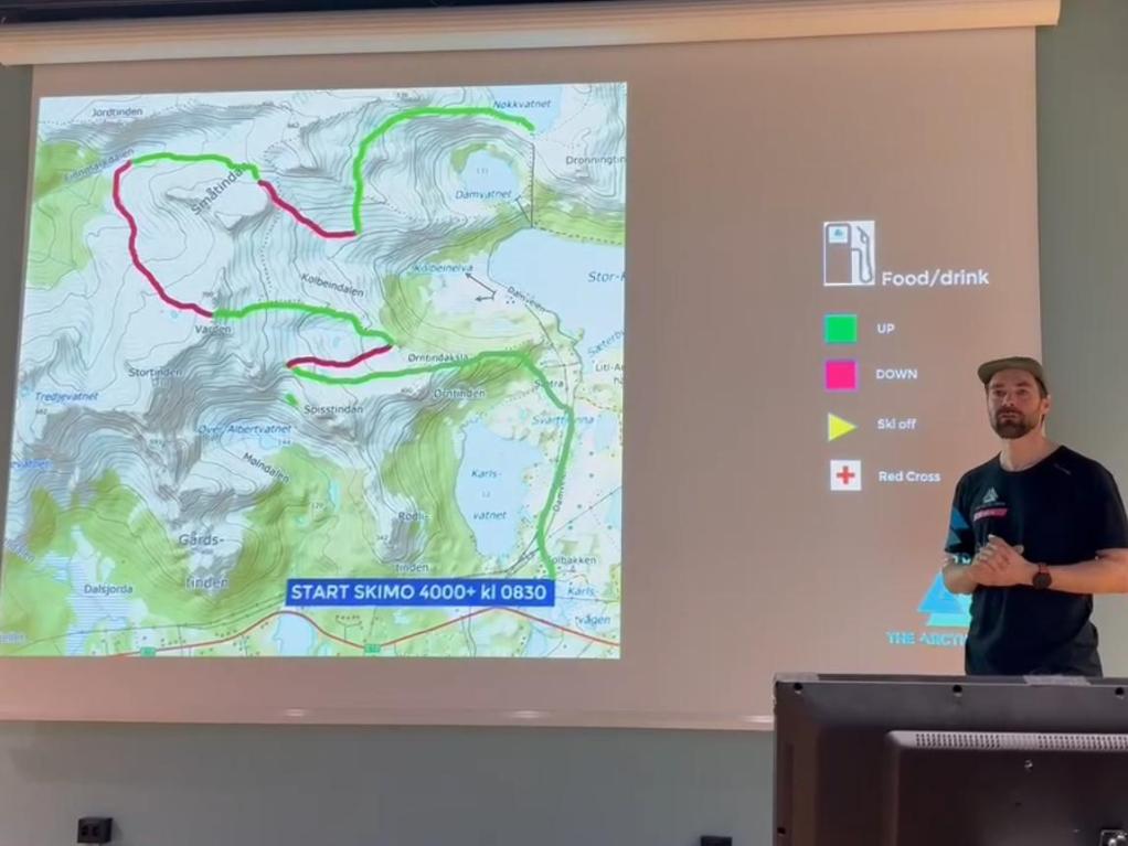羅弗敦滑雪登山賽主辦方在賽前準備會上介紹賽道地形圖。截圖自李銘提供的視頻