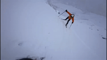 比賽在低能見度中進行,有選手摔倒在賽道邊。圖片來自王凱翔