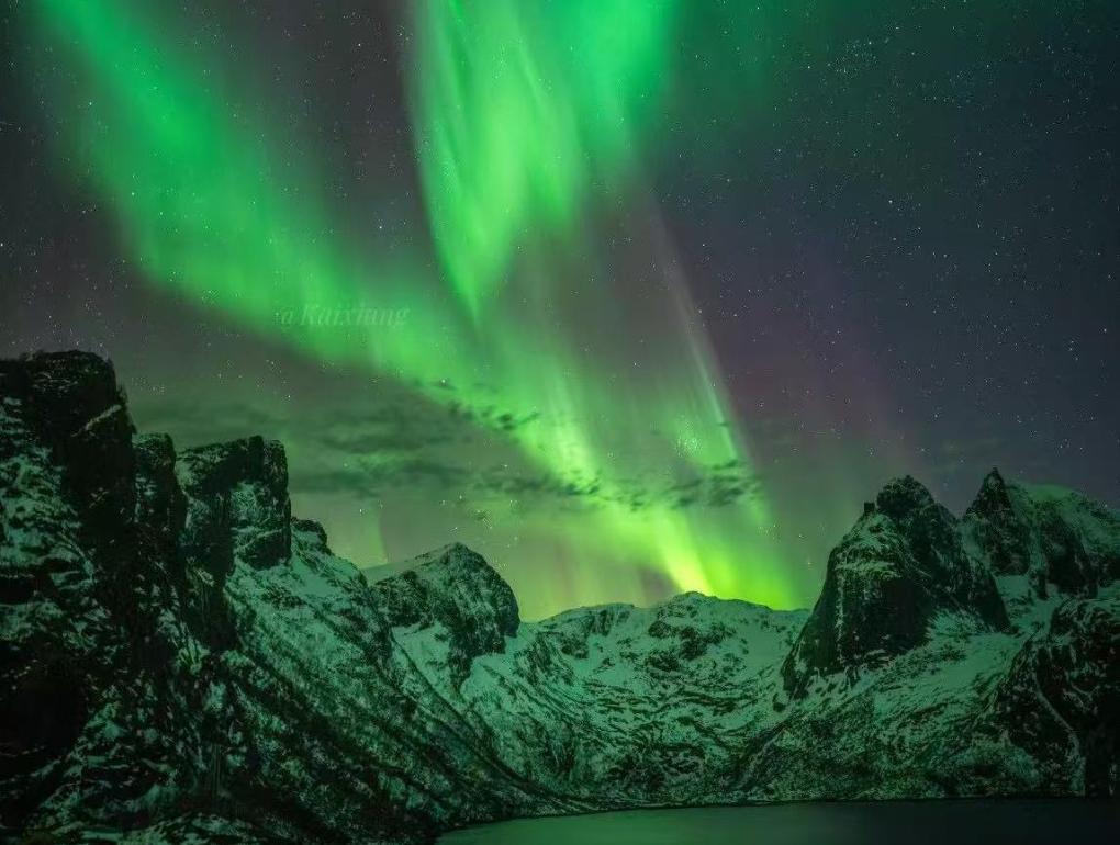2025挪威羅弗敦滑雪登山賽后,王凱翔在當地拍攝的極光景象。