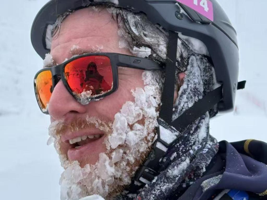 2025挪威羅弗敦滑雪登山賽上,一位滿頭結冰的選手。王凱翔攝