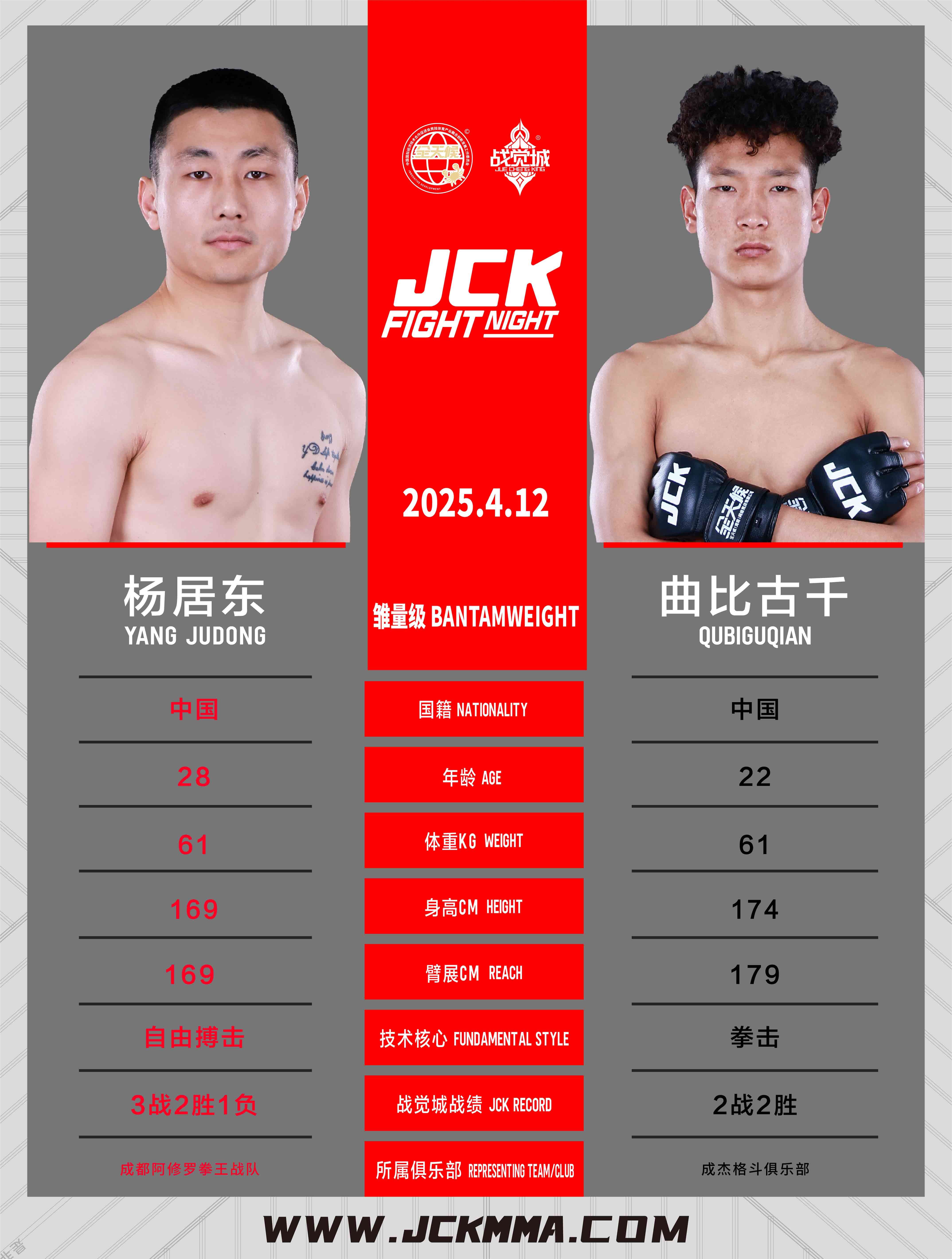 曲比古千,年齡22歲,技術核心:拳擊,在JCK戰覺城2戰2勝,曾一致判定戰勝阿卜杜拉·達依木、向光偉。