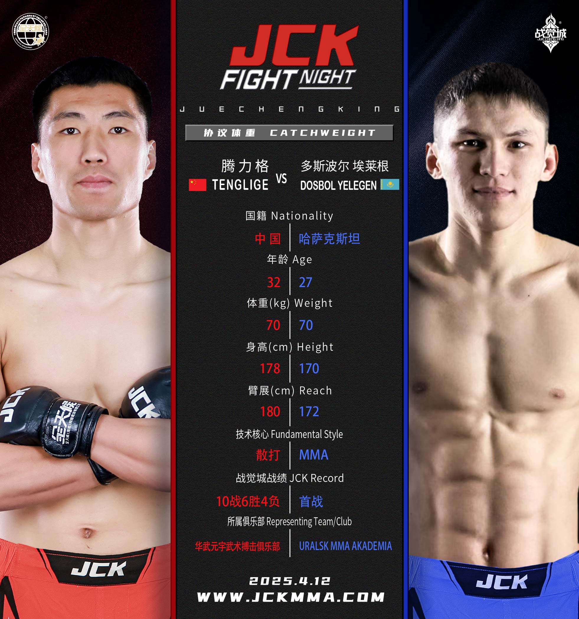 騰力格,JCK戰覺城羽量級官方排名第三,目前在JCK戰覺城10戰6勝,在羽量級歷史出場數榜單中位列第三,并憑借5場終結戰果,占據歷史終結場次排名第五、羽量級終結場次榜首之位。