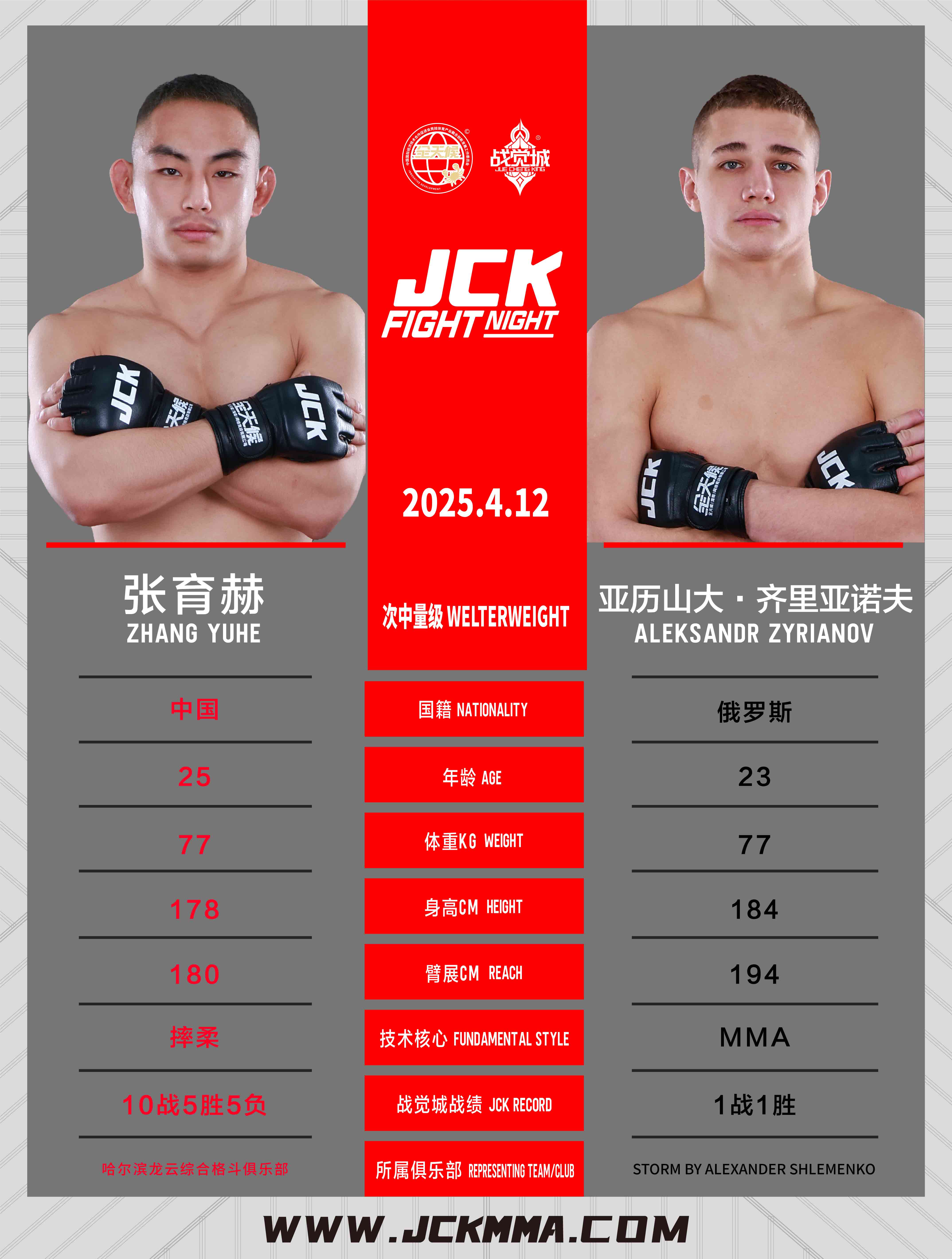 張育赫,JCK戰覺城次中量級官方排名第五,JCK戰覺城戰績:10戰5勝。