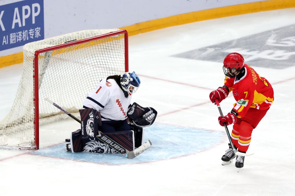 比賽伊始,雙方攻勢積極。第三分鐘,荷蘭隊打出精妙配合,科拉德門前補射得手,冰球從中國隊門將詹佳慧腿下滑入球網,比分變為0:1。