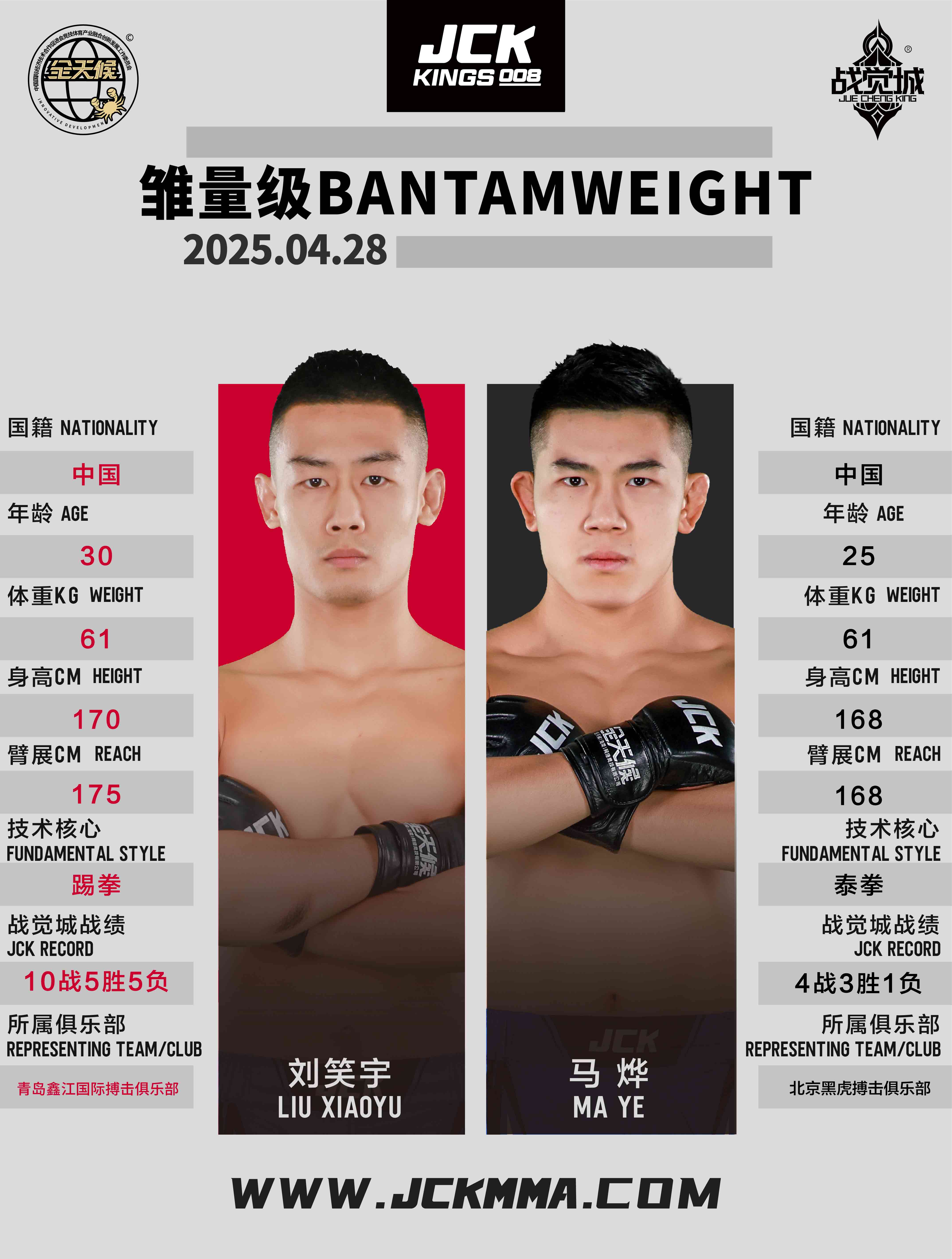 馬燁,JCK戰覺城雛量級官方排名第九,泰拳高手,在JCK戰覺城4戰3勝,曾戰勝過葉爾波勒·塔加力克、阿卜杜拉·達依木、謝米克·薩爾巴紹夫。