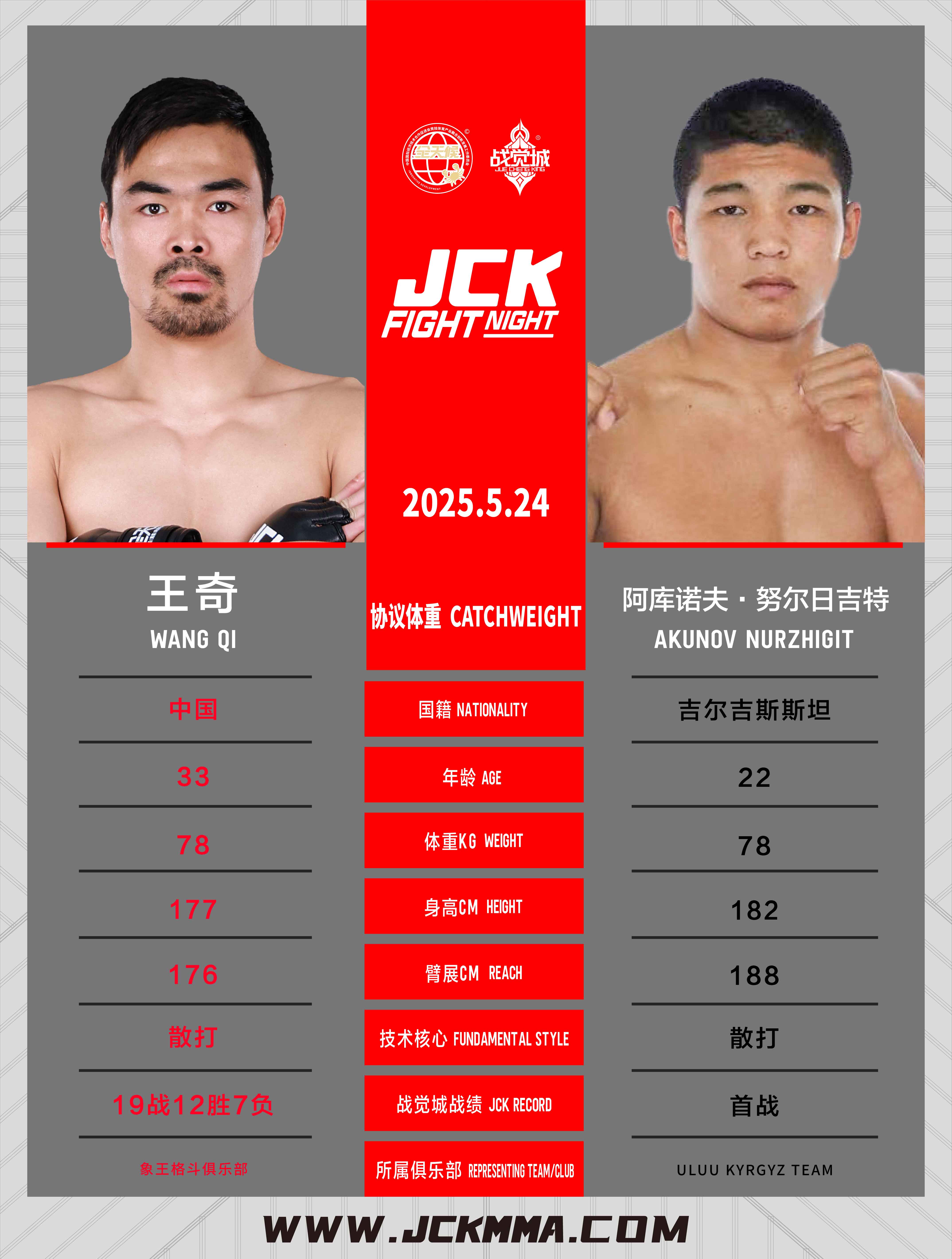 聯合主賽 協議體重 | 王奇 VS 阿庫諾夫·努爾日吉特